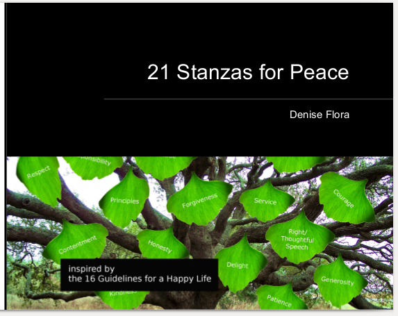 The Verses for a Meaningful Life were first presented in calendar format in 2010. Now the Verses are available as a full color photo book in both large and small formats as well as a pdf. These four line verses are inspired by ideas from the 16 Guidelines for Life. The preview is big enough to read even if you can't buy it, so everyone can use these verses as reminders for the day. The Verses are also viewable at one of the archive albums for the Three Wishes for a Meaningful Life app, the 3W Cards/Verses photo album, and are an integral part of The Rhythm of Virtue practices.