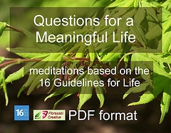 The Questions for a Meaningful Life were first presented in calendar format in 2011. Now available as a full color photo book and downloadable pdf, these are also based on ideas from the 16 Guidelines for Life. Inspirational photos and weekly questions help to cultivate the 16 positive attitudes in your daily life. Use these ideas such as Patience and Forgiveness to develop your innate compassion and wisdom for a happier life.